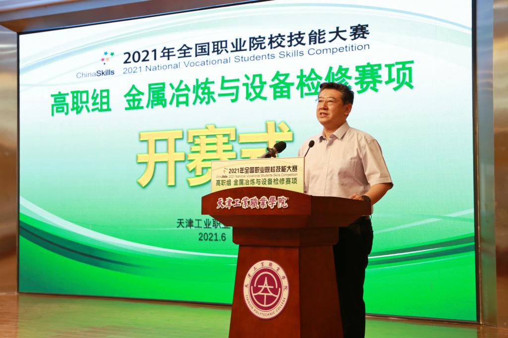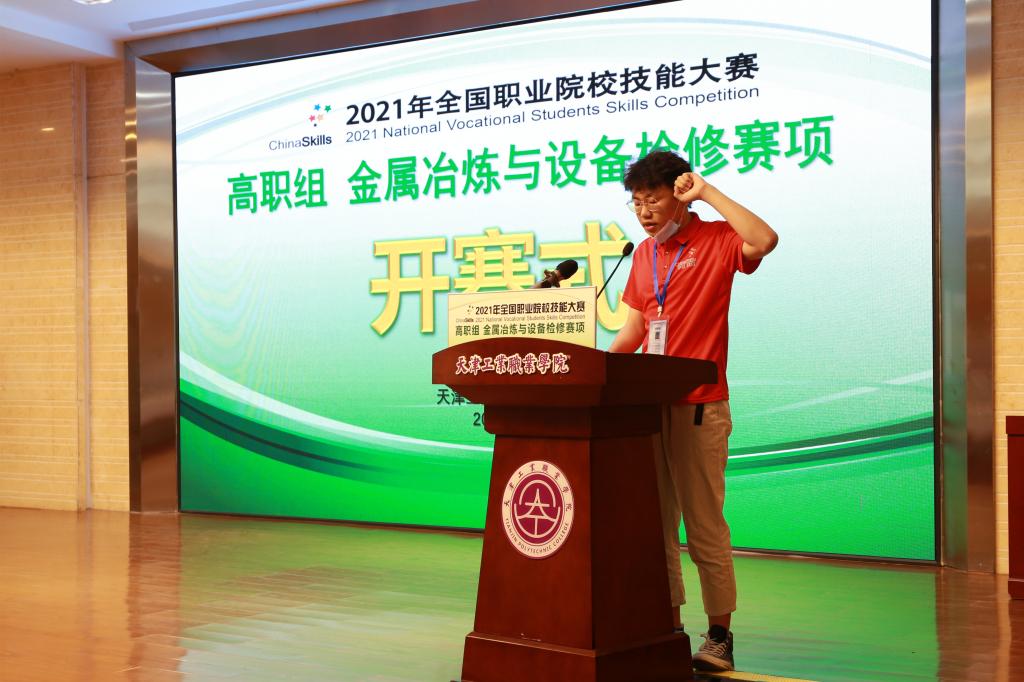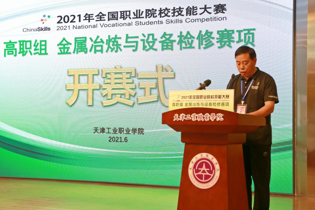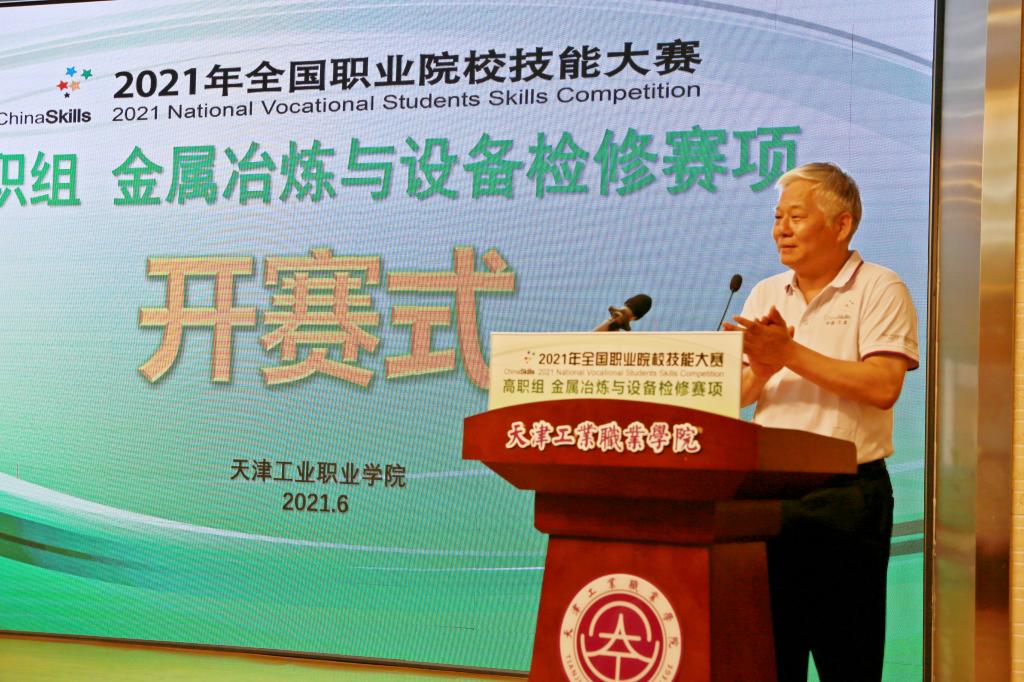 2021年6月19日上午,2021年全国职业院校技能大赛高职组金属冶炼与设备检修赛项在万象城allwincity官网入口隆重开赛。天津市教育委员会副主任白海力;天津市北辰区副区长马希荣;有色金属工业人才中心党委书记、总经理,本届大赛的监督仲裁长谢承杰;天津市冶金集团(控股)有限公司党委副书记、总经理董涵;万象城allwincity官网入口党委书记汪坪;万象城allwincity官网入口党委副书记柴娜娜;山东星科智能科技股份有限公司总经理霍锋、张宪科等出席,开赛式由万象城allwincity官网入口院长孔维军主持。