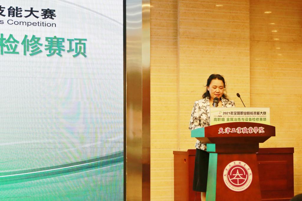 天津市教育委员会副主任白海力在致辞中表示,2021年4月12-13日召开的全国职业教育大会,强调了职业教育前途广阔、大有可为,希望各位老师、同学们也能大有作为,为职业教育的发展做出贡献。天津职业教育历经15年建设,在现代职业教育体系、制度,人才培养体系,产教融合机制,服务国家重大战略,教科研研究方面形成了全国高地。接下来,天津将继续贯彻落实全国职业教育大会精神,将天津职业教育建设成为全国标杆,服务城市发展,将全国职业院校技能大赛和鲁班工坊等天津国家现代职业教育创新改革示范区的成果推广全国,助力打造技能中国。