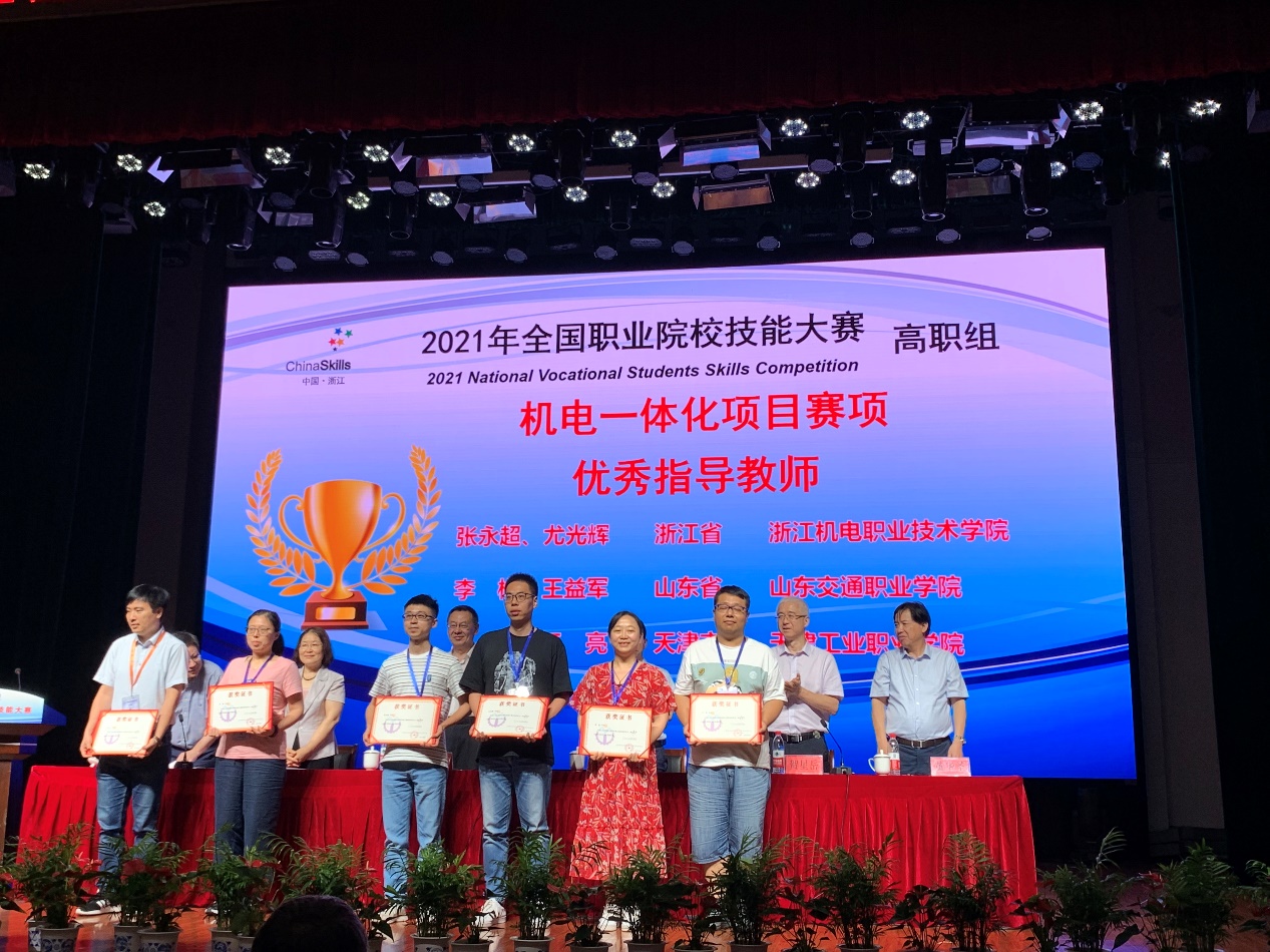 万象城参赛两名选手刘浩洋,郭鑫来自机械工程系机电一体化技术专业,在王亮、李蕊两位老师的悉心指导下,通过层层选拔获得了代表天津市参加本次国赛资格。训练期间面临比赛任务重、难度大、强度大等各种难题和困难,学生们永不放弃,迎难而上,特别是在比赛期间学生们及时适应赛场,调整心态和比赛方案,实现了自己的国赛梦想,最终获得全国一等奖(全国排名第三)的优异成绩,两位指导教师获得全国“优秀指导教师奖”。