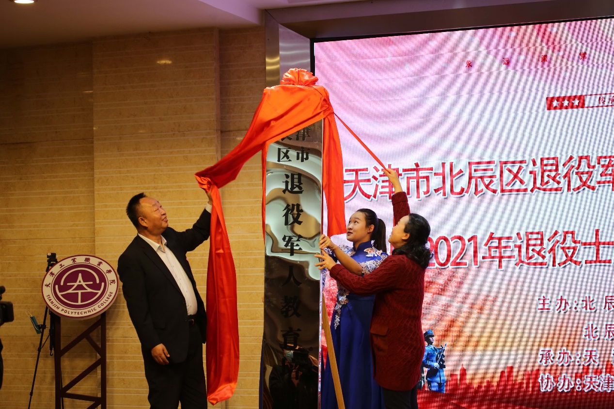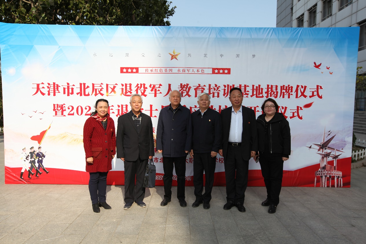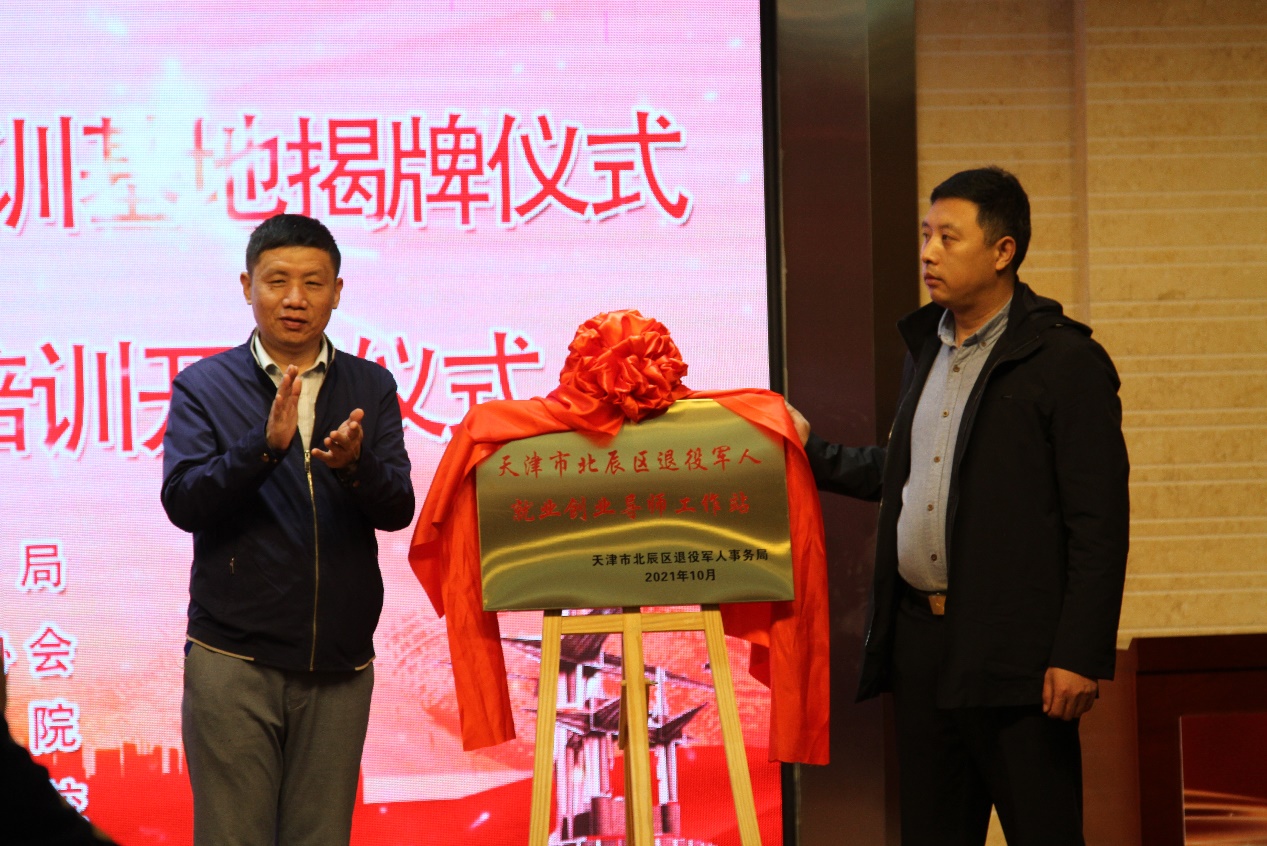 2021年10月20日,天津市北辰区退役军人教育培训基地揭牌仪式暨2021年度退役士兵适应性培训开班仪式活动在万象城allwincity官网入口隆重举行。天津市关爱退役军人协会、天津市退役军人事务局、北辰区退役军人事务局、万象城allwincity官网入口、天津市北辰区华大职业培训学校、天津市新天钢钢铁集团有限公司、中国建设银行北辰支行、中国联通北辰分公司、中国电信北辰分公司相关领导以及以及荣获2021年度“全国最美退役军人”称号的天津飞浪智慧洗涤科技有限公司董事长衡飞参加揭牌仪式。北辰区退役军人事务局党组书记、局长周晓军同志,万象城allwincity官网入口党委书记汪坪同志,为“北辰区退役军人教育培训基地”揭牌。北辰区退役军人事务局党组成员、副局长郭建军同志、天津市北辰区华大职业培训学校张占月董事长,为“天津市北辰区退役军人就业创业导师工作站”揭牌。