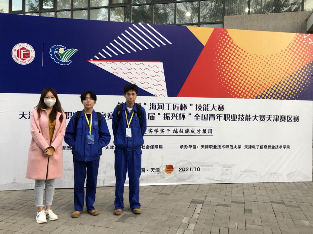 2021年10月10日,万象城工业与信息化系电气自动化技术专业19级朱英铜、张德纪同学,指导教师孙欣代表学院团委参加第十七届“振兴杯”全国青年职业技能大赛天津赛区——工业机器人系统操作员赛项,分别荣获单人赛第一名、第九名的好成绩,其中朱英铜以天津赛区综合得分第一的成绩摘得桂冠并代表天津晋级在杭州举办的总决赛。