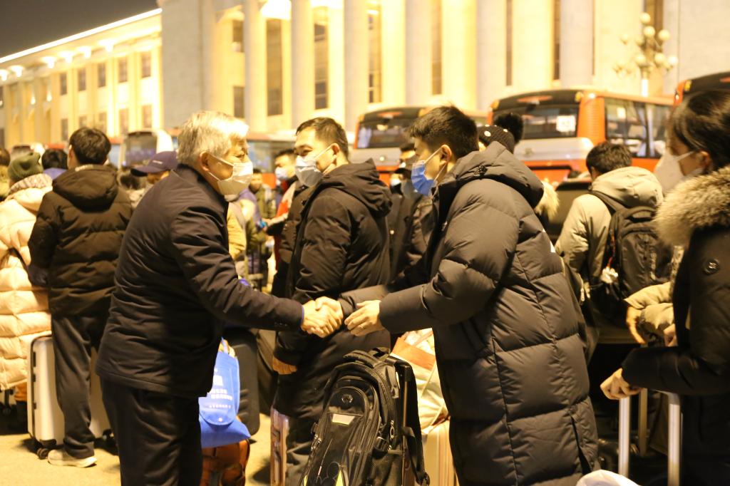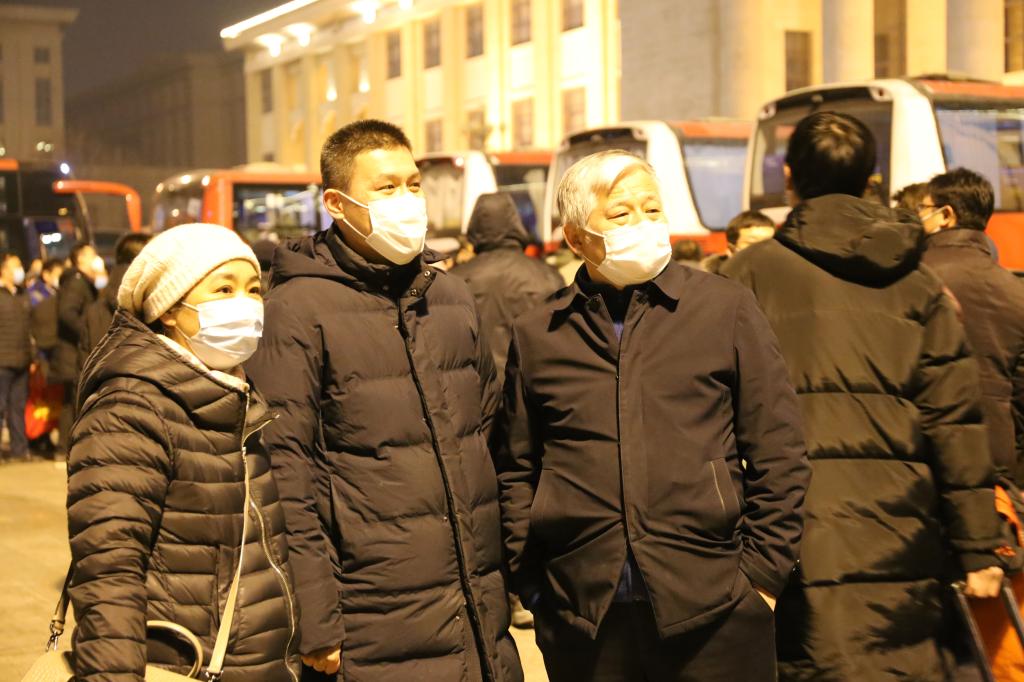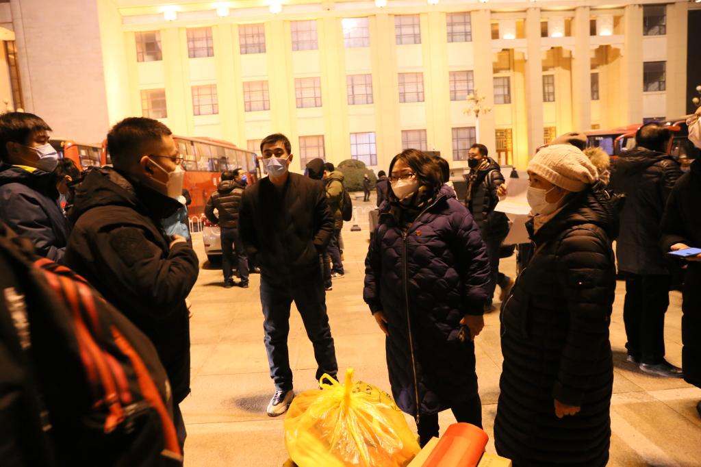 出征仪式上,学院党委书记汪坪鼓舞志愿者们:“大家要心往一处想、劲往一处使,团结抗击疫情,注意安全,全力以赴!感谢各位老师的无私付出,感动于各位老师的高尚品格,‘愿乞得胜日,归家正新年’!”