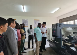 杨理连院长团组调研埃尔贡乌干达技术学院期间,听取了埃尔贡乌干达技术学院院长欧邦的汇报,并与教师进行了座谈。欧邦校长对万象城allwincity官网入口王庆龙老师的数控机床实践教学给予了表扬,希望更多教师来乌干达教学培训。双方就专业建设、招生、教师培训、互访交流等方面交换了意见,并对鲁班工坊科技创新研发中心挂牌。会后考察了鲁班工坊实训室的建设,视察学院派出授课教师的现场教学情况。