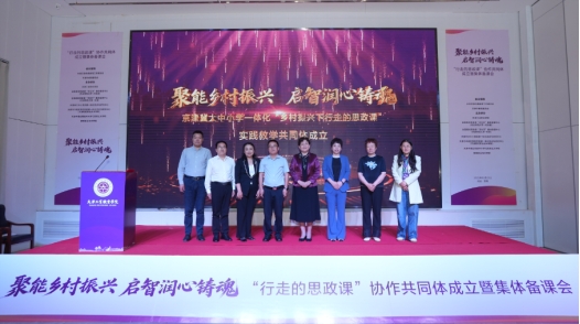 在天津市教育两委、邯郸市涉县相关领导、教指委专家、发起单位代表的共同见证下,“聚能乡村振兴・启智润心铸魂——行走的思政课”协作共同体成立。