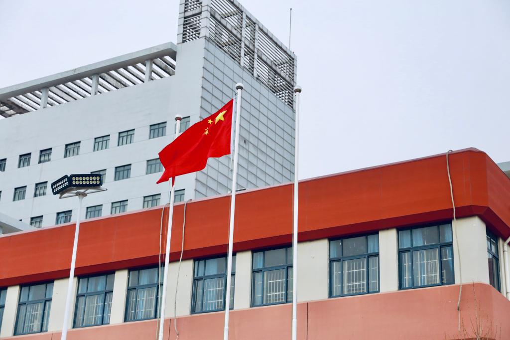 怀着对祖国无限热爱和崇高的敬意,全体在场师生齐唱国歌,行注目礼,庄严肃穆,五星红旗高高飘扬在学院上空。