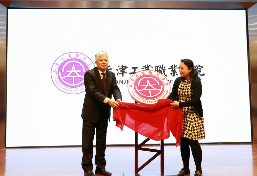 仪式最后,两位领导一起为学院新校徽揭牌,新校徽、校训的启用标志着学院新辉煌的开始。
