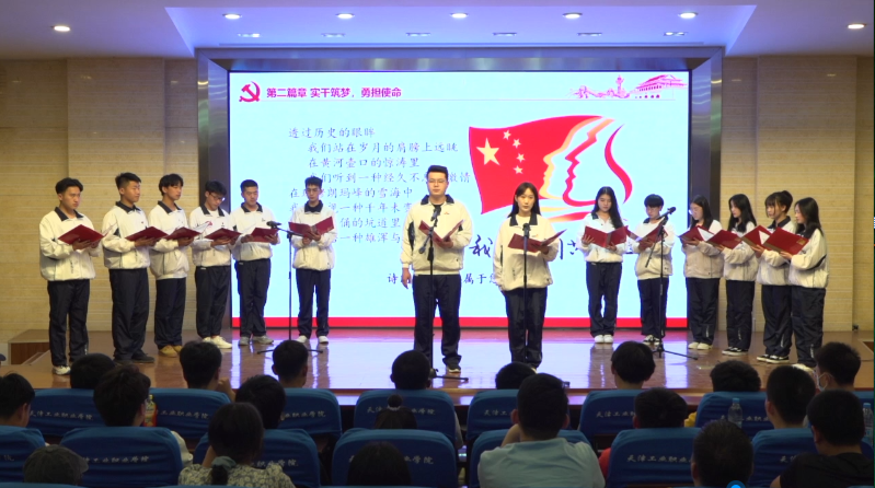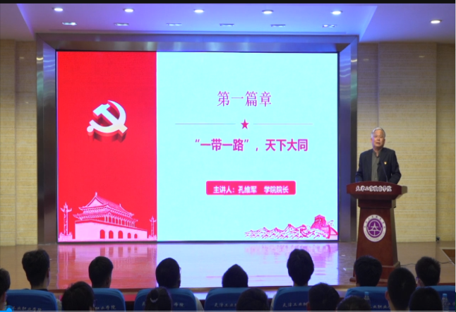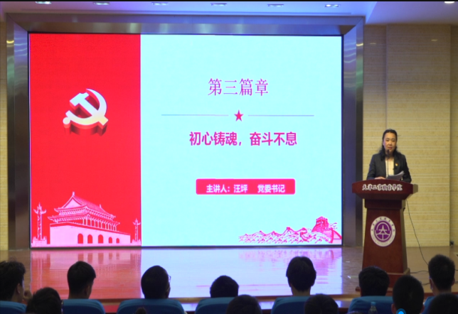 该课程由孔维军院长和汪坪书记主讲,专业课老师作为嘉宾,学生参与,共同上演了一堂精彩纷呈的主题思政课。课程以中国共产党百年华诞为切入点,展现了工科职业院校特色的思政课改革创新之路。课程从“‘一带一路’,天下大同”,“实干筑梦,勇担使命”,“初心铸魂,奋斗不息”三个方面进行了讲授。