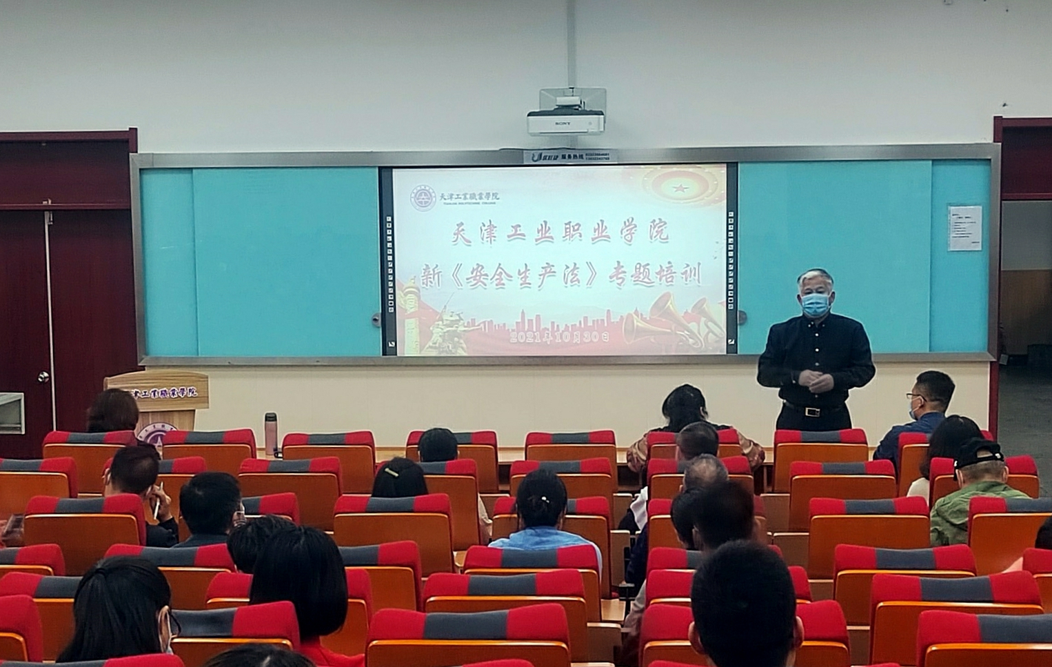 为深入学习贯彻落实新《安全生产法》,全面加强安全生产法治观念,进一步压实安全生产主体责任,有效提升安全生产管理水平,10月30日下午,万象城allwincity官网入口特邀天津市应急管理局聘任专业技术专家、注册安全工程师芮祥为学院干部职工进行新《安全生产法》专题培训。学院院长孔维军、党委副书记柴娜娜、副院长张秀芳、学院全体中层干部、系部安全员、实训室管理员及辅导员老师等76人参加了本次专题培训。