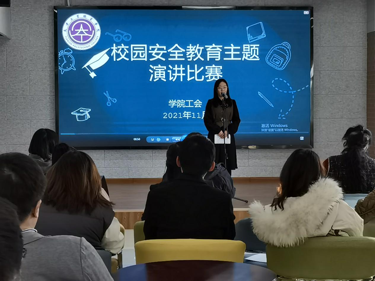 围绕学院安全教育的中心工作,结合校园安全月活动,为不断强化广大教职工的安全意识,动员广大教职工做好安全工作,学院工会于11月12日下午1点在教工之家举办了“校园安全教育”主题演讲比赛活动,特邀学院党委副书记柴娜娜,学院副院长张秀芳,学院工会副主席倪茂娟,学院基础部副主任张学婷为本次大赛担任评委。