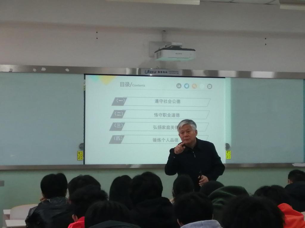 孔院长从个人品德及其作用、掌握道德修养的正确方法、锤炼高尚道德品格、引领社会风尚等四个方面讲授课程。通过选取同学们日常学习生活中的典型案例,结合职业教育发展的情况,对同学们养成良好道德品格,引领新时代新青年的社会风尚提出了具体要求。在授课现场孔院长与同学们亲切交流,同学们积极参与,课堂气氛活跃。
