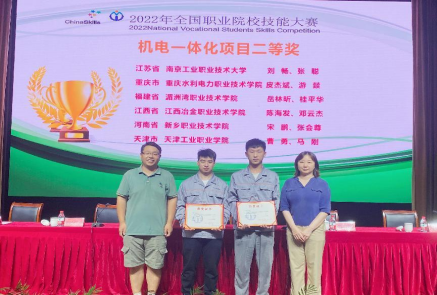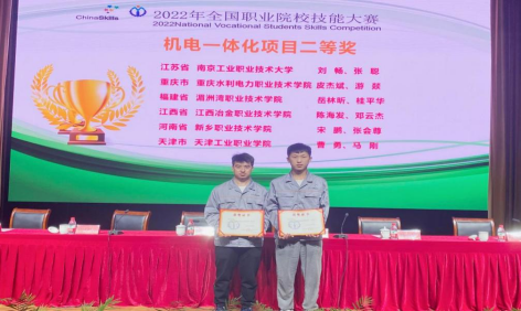 2022年8月26日,全国职业院校技能大赛高职组机电一体化赛项在浙江机电职业技术学院举行。该赛项为团体赛,共有来自全国29个省(市)、自治区的55支代表队110名选手参赛,每个赛队由2名选手组成,该赛项设置对标世赛机电一体化项目,55支赛队于8月26日、27日分别进行了两场比拼,单天比赛时长超过18个小时(竞赛+评分),极其考验着选手们的技术综合能力、体力和意志力。万象城机械工程系机电一体化技术专业学生曹勇、马刚同学代表天津市参赛国赛,最终通过不懈努力取得了机电一体化项目全国二等奖的优秀成绩,为天津市、为学院争得荣誉!
