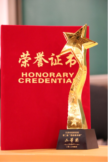 为深入贯彻落实党的二十大精神,深化爱党爱国爱社会主义教育,市教育工委、市教委举办了天津市高职院校第二届“思政课本剧”比赛暨“党的二十大与我”课本剧展演。比赛历时近半年,经过校内初赛、市级复赛和现场决赛的激烈角逐,由思政课部焦慧娟老师和武敏老师指导学生团队展演的原创作品《孤星海天一岛,五星闪耀一旗》荣获天津市高职院校第二届“思政课本剧”二等奖。