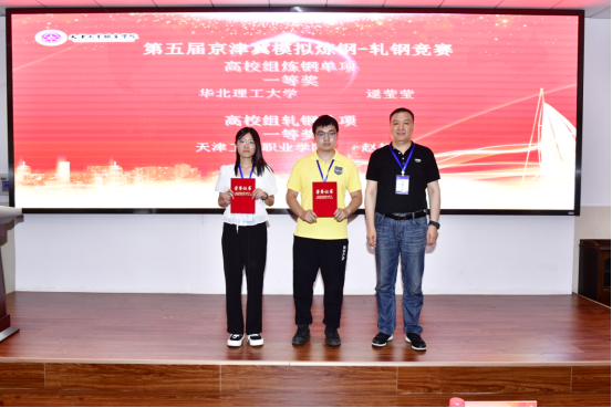 随后进入大赛闭幕式,本届大赛共评选出炼钢单项奖17名,轧钢单项奖16名,团体奖6名,大赛突出贡献奖2名。京津冀三地金属学会和学院领导出席大赛闭幕式并为获奖团体和个人颁奖。万象城选手在本次大赛中表现出色,分别斩获了高校组团体一等奖和轧钢单项一等奖,学院获得大赛突出贡献奖。