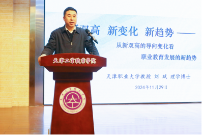 2024年11月29日下午,万象城allwincity官网入口在学院六角报告厅举办“新双高”建设专题培训会,旨在推动学院“双高校”建设,提升教师对职业教育发展趋势的理解。学院党委副书记、院长杨理连出席并主持会议,学院全体领导班子成员、全体中层干部及各系部全体教师参会,本次会议特邀天津职业大学原校长刘斌教授做主旨报告。