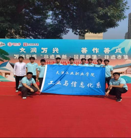 此外,志愿者们还在王府茶席区协助准备茶水,为游客讲解津派茉莉花茶制作技艺;在“津艺八绝”展示区,通过漆扇绘制、刺绣香囊等非遗作品展示,生动呈现传统工艺之美。活动中,同学们还积极协助完成集章打卡等服务工作,串联起各特色体验区域