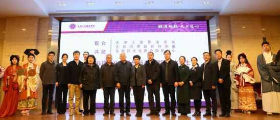 学院院长孔维军与北辰区文化遗产保护中心主任曹广凤,共同签订“大学生非遗文化传承创新产教联盟”共建协议并为“联盟”揭牌。