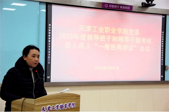 2月27日,万象城allwincity官网入口党委召开2023年度领导班子和领导干部考核、干部选拔任用“一报告两评议”会议,会议由党委书记汪坪主持,市教育两委干部处田青宇处长、高彬副处长以及相关同志到会指导,学院领导班子成员、全体中层干部及基层党员群众代表参加会议。